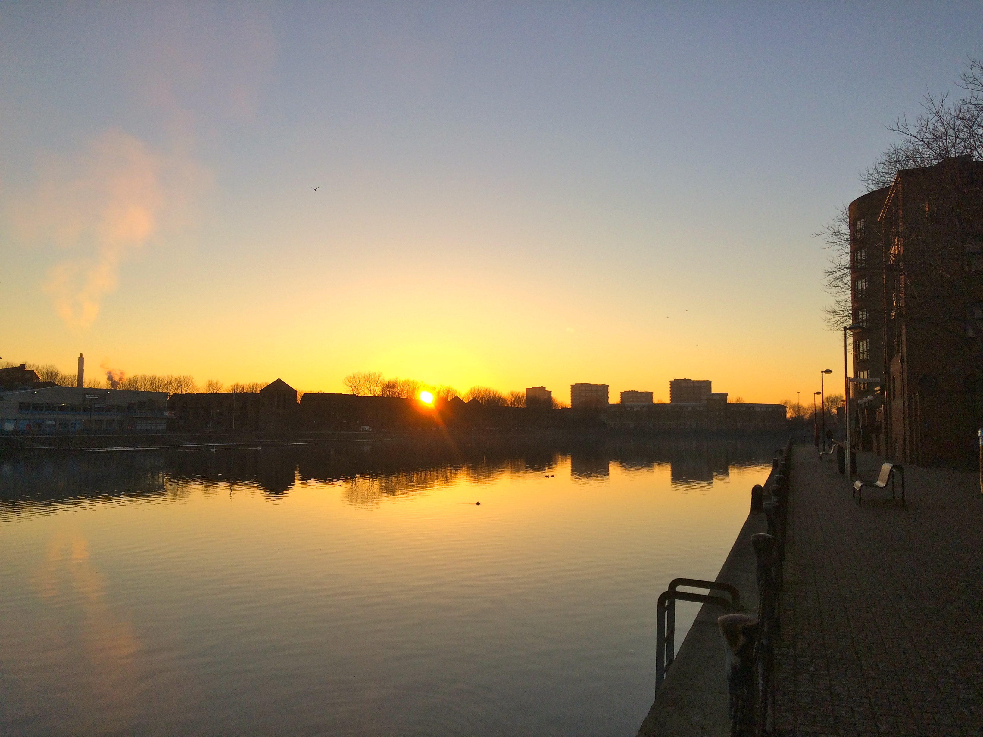Greenland Dock is London’s oldest surviving dock from the now-lost Surrey Commercial Docks Company (closed in 1969). The buildings and warehouses that once lined its sides were used to boil whale blubber to make oil. Whales were brought here by whaling ships chartered from Greenland, hence the dock’s name. One can only imagine what that must have smelled like! Now, the sites are home to new-build riverside homes with sunset views.