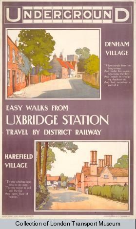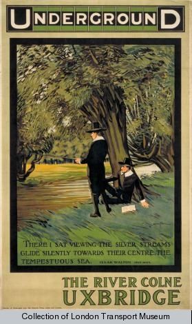 This poster advertises some “easy walks from Uxbridge Station” whilst another depicts two gentlemen fishing alongside the River Colne with the quote: