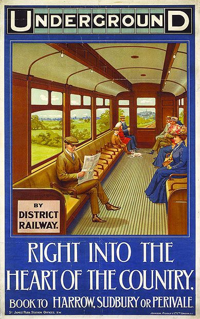 Finally, our last stop on this flying tour is to Harrow and Perivale, advertised as being “the heart of the country” where “field-path rambles in old-fashioned style” could be found.