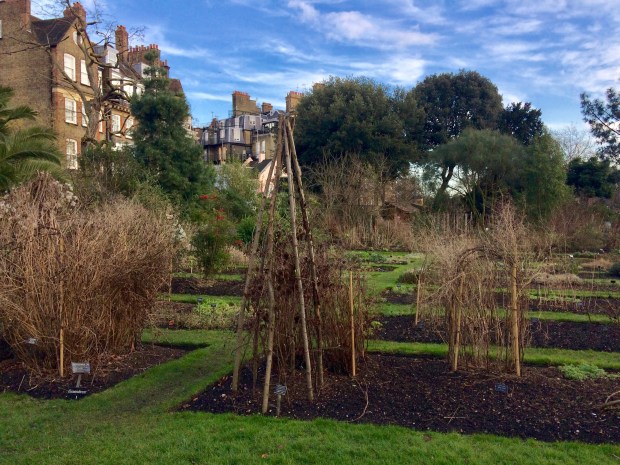 As we wander through the iron gate, an apple tree looms above, offering its crops towards the sky. It’s so quiet here, and I’m reminded that Chelsea was once a village. What a haven this once must have been ~ it still is now, especially in February when most think there isn’t much to seeโฆ Gulp in the fresh, crisp air and keep walking.