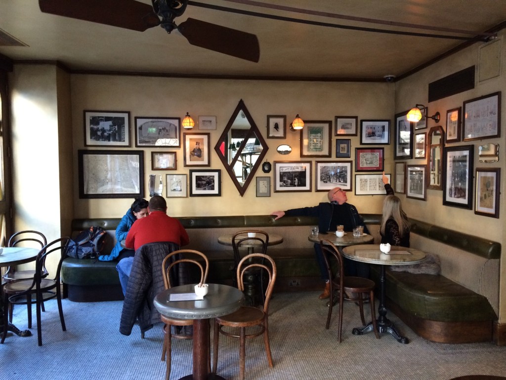 Patrons lounged above coffees on the banquette seating inside, quietly absorbing the distinct 19th century vibe of this bistro-cum-bar in the heart of Soho, which serves up the classics ~ steak-frites and live jazz ~ at lunchtime.
